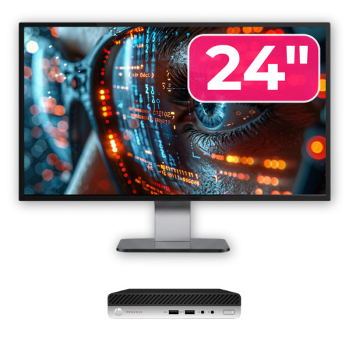 Pachet Calculator Second Hand HP ProDesk 400 G4 Mini PC, Intel Core i5-8500T 2.10 - 3.50GHz, 8GB DDR4, 256GB SSD + Monitor 24"