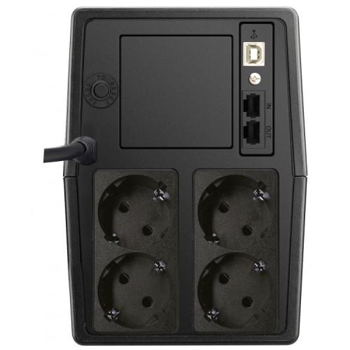 Caracteristici / FacilitatiCapacitate: 1000 VA / 600 W UPS line interactive cu management prin port USB Control eficient al microprocesorului AVR pentru stabilizarea tensiunii (Boost and Buck) Repornire automata la revenirea curentului in retea Forma de unda (Mod Baterie): Unda sinusoidala simulata Incarcare in modul oprit Tip baterie si numarul bateriilor incluse: 12 V / 7 Ah x 2 Functie de pornire la rece Autonomie de backup: 18 minute la 25% sarcina, 5 minute la 50% sarcina, Nu se recomanda utilizarea la 100% sarcina pe termen lung. Interfata: – Retea: cablu de alimentare Schuko – LCD – Conectori de iesire: Schuko x 4 – USB x 1 – Conector telefon/retea: RJ11/ RJ45 Dimensiuni compacte (D x W x H): 320 x 130 x 182 mm Greutate: 8.2 kg. Bateria are 12 luni garantie